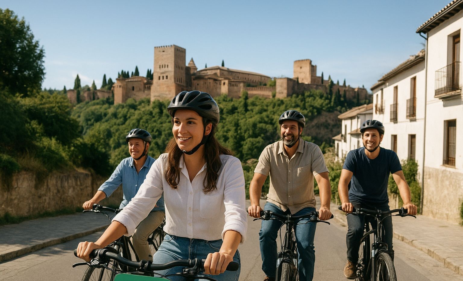Pedalare in silenzio lungo i sentieri, con il profumo dei boschi e la vista sulle torri rosse del palazzo nazarí, è un modo unico per sentirsi parte del paesaggio e non semplici osservatori.